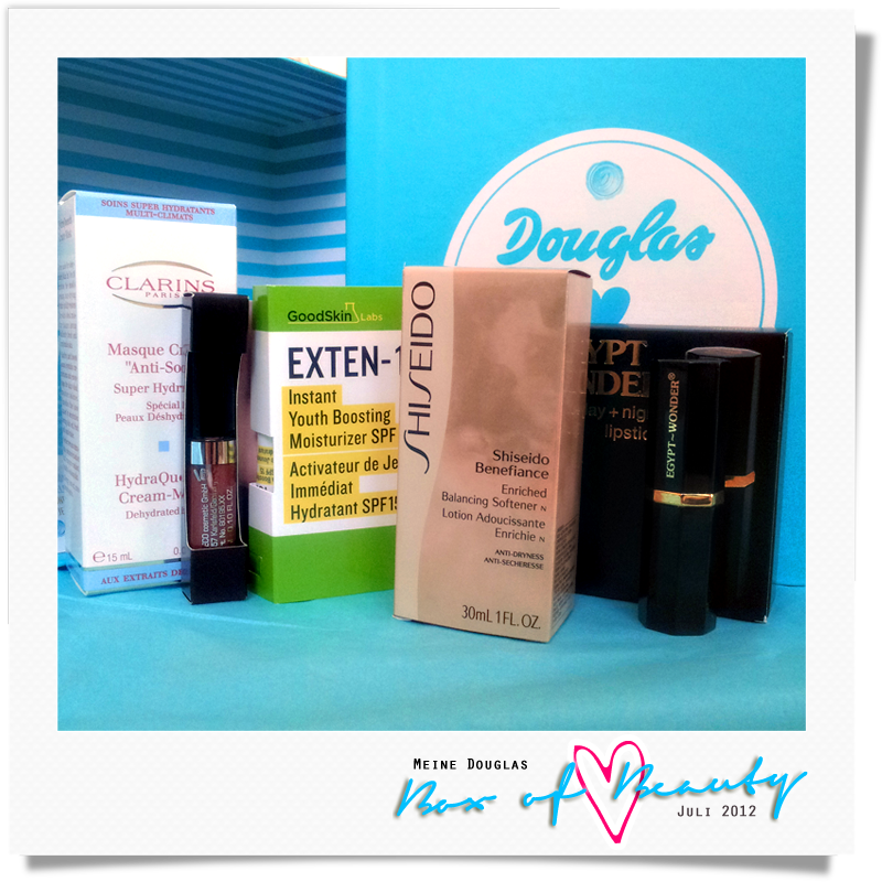 Vorgestern ist bei mir die aktuelle Douglasbox eingetrudelt. Obwohl ich mich wieder vorrangig für Pflege entschieden habe, sind dieses Mal auch zwei Lippenprodukte dabei. Es standen folgende Proben zur Auswahl: